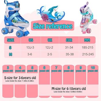 Amazon:$19.99 ($39.99)Shark Roller Skates 4 Size Adjustable Rollerskates with Light Up Wheels Breathable Upper Cushioned Sole Rollerblades for Outdoor and Indoor Use for Girls Boys