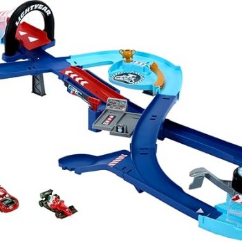 Amazon:$20.00 ($43.19)Mattel Disney and Pixar Cars Playset with 2 Toy Cars, Lightning McQueen & Francesco Bernoulli, GRC Jumping Raceway Track Set with Kid-Powered Booster