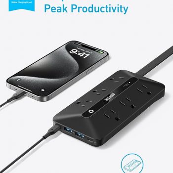 Amazon:$20.79 ($25.99)Anker Flat Plug Power Strip 300J with USB Ports, 10-in-1 Ultra Thin Power Strip with 6 AC, 2 USB-A and 2 USB-C Ports,5feet Extension Cord, Desk Charging Station,Home Office College Dorm