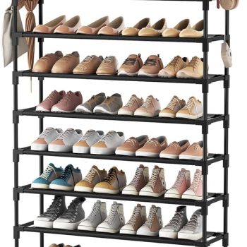 Amazon:$22.49 ($29.99)VTRIN 10 Tier Shoe Rack Tall Large Capacity 50 Pair Wide Shoe Organizer with Two Hooks Sturdy Metal Shoe Shelf for Entryway, Closet, Bedroom