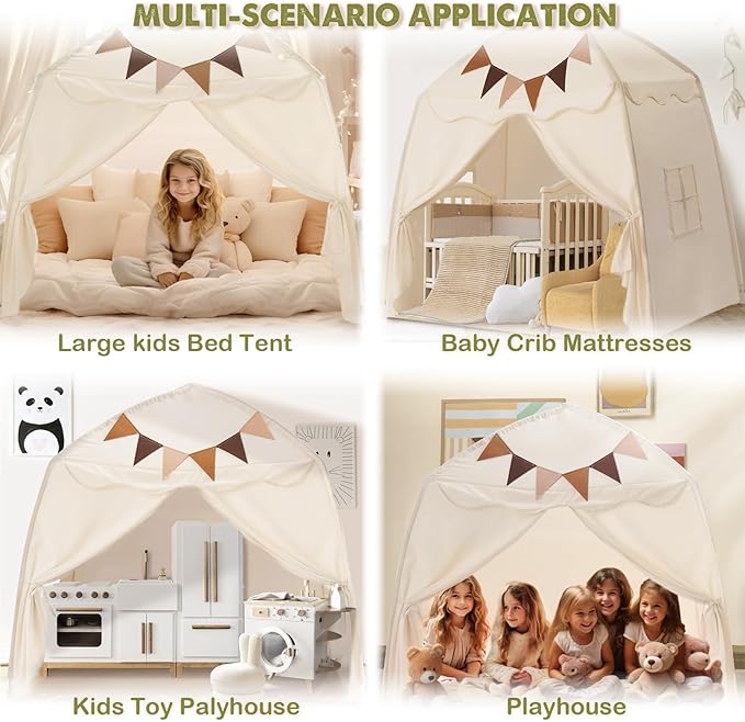 Amazon:$24.75 ($42.99)Extra Large Kids Play Tent with Flags & Star Lights, Portable & Foldable Teepee, Boys & Girls, Indoor Outdoor Dome Tent Playhouse, 59x39x59 in, Cream