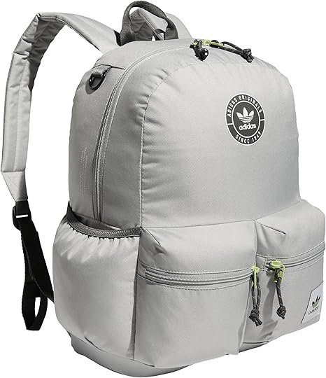 - adidas Originals Trefoil 3.0 Backpack, Stone Grey/Lucid Lime Green/Grey Six, One Size :$27.91 ($50.00)at Amazon.com