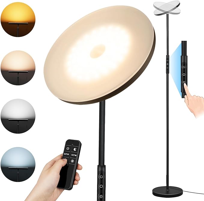 Amazon:$29.99 ($59.99)Floor Lamp, Upgraded 36W 3600LM Super Bright Torchiere LED Floor Lamps for Living Room, Stepless Dimmable Color Temperature 2700K-6500K with Remote & Touch Control, Standing Light for Bedroom Office