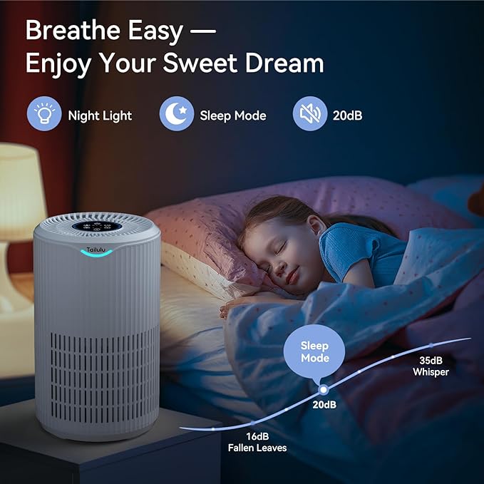 Amazon:$37.49 ($149.99)Air Purifiers for Home Large Room Up to 1500 Sq Ft, Tailulu H13 HEPA Air Purifier for Pet Dander Smoke Odor Dust Pollen, Air purifiers for bedroom Living Room, Kitchen, Office, Sleep Mode