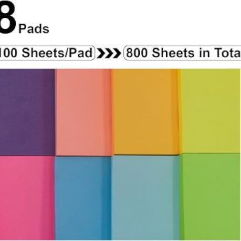 • Sticky Notes 3×3 Inch, 8 Pack Sticky Pads (100 Sheet/Pad), Bulk Sticky Note Pads, Assorted Multicolor Self-Sticky Notes Pad – Back to School and Office Supplies Blank Desk Note Pads:$4.99($5.99)at Amazon.com