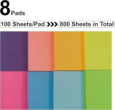 • Sticky Notes 3x3 Inch, 8 Pack Sticky Pads (100 Sheet/Pad), Bulk Sticky Note Pads, Assorted Multicolor Self-Sticky Notes Pad - Back to School and Office Supplies Blank Desk Note Pads:$4.99($5.99)at Amazon.com