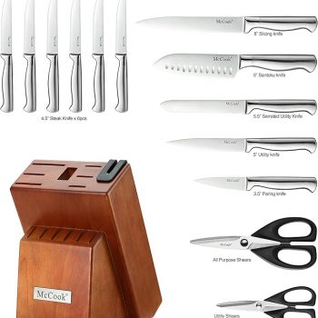 - McCook Knife Sets, German Stainless Steel Kitchen Knife Block Sets with Built-in Sharpener :$47.90 ($129.99)at Amazon.com