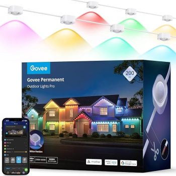 Amazon:$479.99 ($759.99)Govee Permanent Outdoor Lights Pro, 200ft with 120 RGBIC LED Lights for Daily and Accent Lighting, 75 Scene Modes for Outdoor Decor, IP67 Waterproof, Works with Alexa, Google Assistant, Matter, White