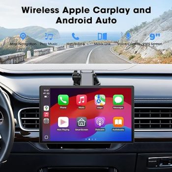 Amazon:$49.69 ($119.99)Carplay Screen for Car, 9” Wireless CarPlay & Android Auto- Upgrade Portable Touchscreen with Bluetooth, Mirror Link, Voice Control, Hands-Free Calling,Plug & Play Car Play Screen