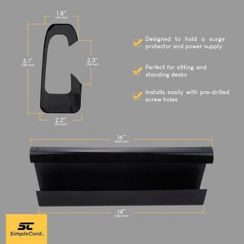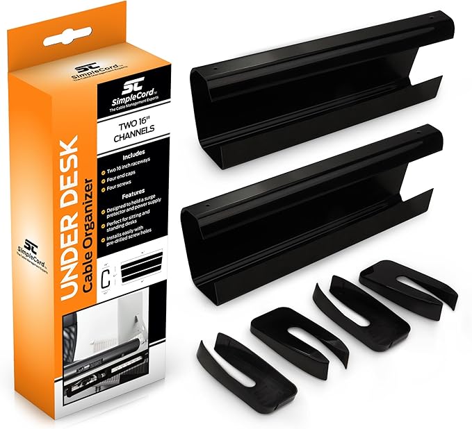 Amazon:$5.75 ($11.75)Cable Management Trays – 2-Pack 16-Inch Raceway Channels – Cord Holder Kit for Under Desk, Office, and Kitchen Use by Simple Cord (Black)