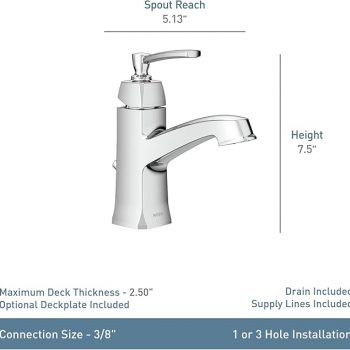 - Moen Conway Chrome One-Handle Single Hole or Centerset Bathroom Faucet with Drain Assembly, WS84923 :$52.90 ($84.99)at Amazon.com