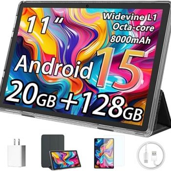 Amazon:$53.99 ($89.99)Tablet, 11-inch Android 15 tablets, 20GB+128GB+1TB expansion, Octa-core, 8000mAh large-capacity battery, 5G/2.4G WiFi6, GPS, Bluetooth 5.0, 5MP + 8MP dual cameras, Widevine L1, protective case – Black