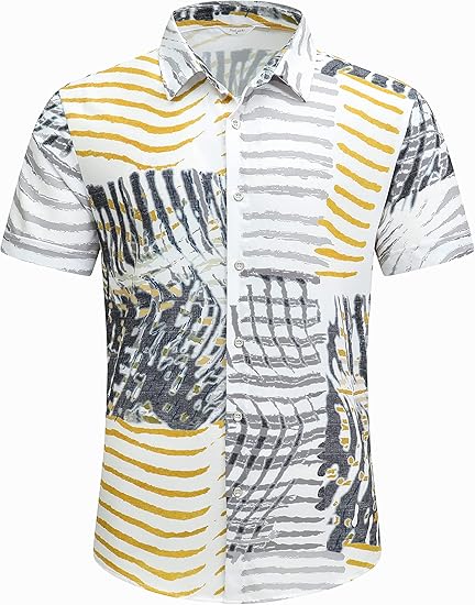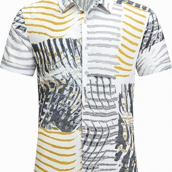 Amazon:$6.99 ($19.99)SheLucki Hawaiian Shirt for Men, Unisex Summer Beach Casual Short Sleeve Button Down Shirts, Printed Palmshadow Clothing