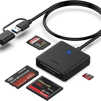 Amazon:$7.99 ($15.99)Memory Card Reader, BENFEI 4in1 USB 3.0 and USB-C to SD Micro SD MS CF Card Reader Adapter, 4 Cards Simultaneously Read and Write, Compatible with iPhone 15 Series, MacBook Pro/Air 2023, and More