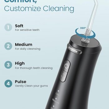 Amazon:$7.99 ($35.99)Onlyone Water Dental Flosser, 300ML Portable Oral Irrigator for Teeth, 4 Modes and 5 Jet Tips,Rechargeable Irrigation Cleaner,Electric Flossing Machine Power Flossers & Irrigator Accessories Black
