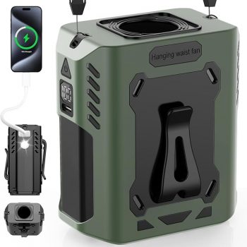 Amazon:$7.99 ($9.99)Waist Fan, Upgraded AI Fan Max 25H Working Time, 5-Speed Strong Wind with 8000mAh Battery, Portable Belt Fans with Flashlight, Hands-Free Neck Fans for Outdoor,Camping,Travel,Sports