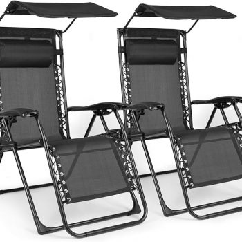 Amazon:$70.55 ($179.99)Zero Gravity Chairs Set of 2, Oversized Outdoor Recliner Patio Lounge Chair with Canopy Shade, Foldable Outdoor Lounger with Cup Holder Tray for Backyard Beach Camping, Black