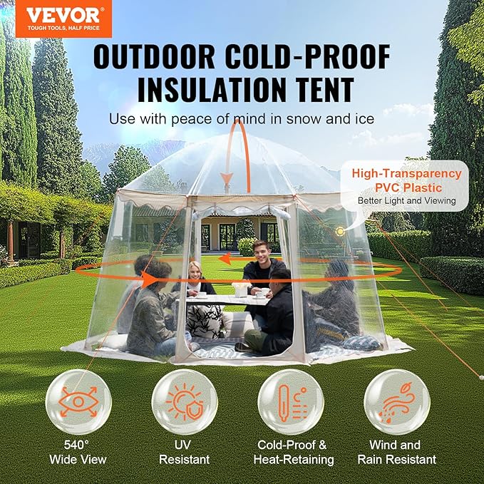 Amazon:$79.53 ($84.59)VEVOR Upgraded Pop Up Bubble Tent for 4-8 People, Need Simple Assembly – 10×9.2ft Large Outdoor Clear Bubble Tent Dome, Weatherproof Clear Tent Shelter for Outdoor Activities, Events, and Parades
