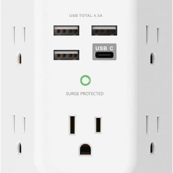 Amazon:$8.95 ($11.99)Addtam USB Wall Charger Surge Protector 5 Outlet Extender with 4 USB Charging Ports (1 USB C Outlet) 3 Sided 1800J Power Strip Multi Plug Outlets Wall Adapter Spaced for Home Travel Office ETL Listed