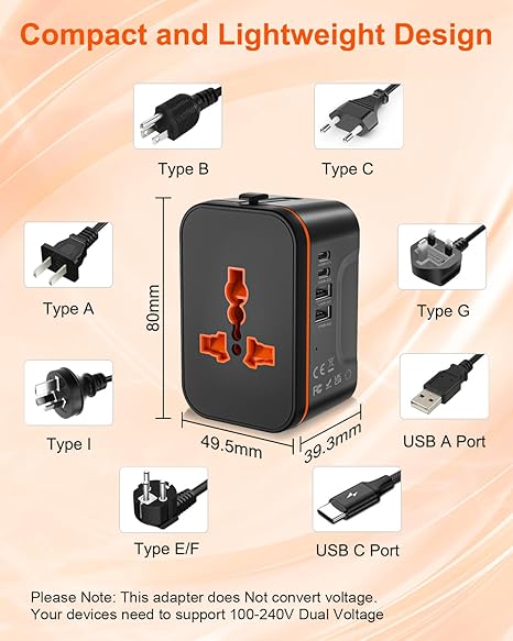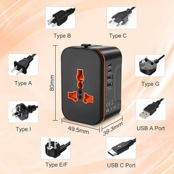 Amazon:$8.99 ($14.99)Universal Travel Adapter Worldwide, European Travel Plug Adapter with 2 USB C, 2 USB A and Multi AC Outlets, International Power Converter All in One Universal Charger Power Adapter for EU US UK AUS
