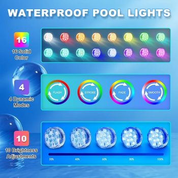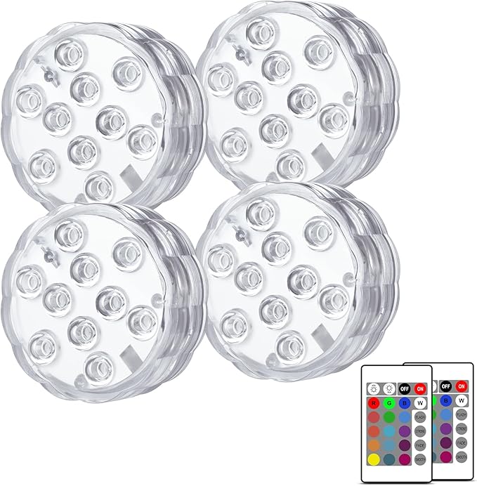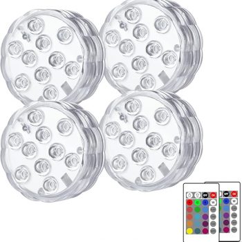 Amazon:$8.99 ($19.99)Creatrek Submersible LED Lights with Remote, Battery Operated 16 Color Changing Pool Lights, Cordless Pool Lights for Above Ground Pools, Ponds, Party, Vase, Aquarium Decorations, 4 Pack