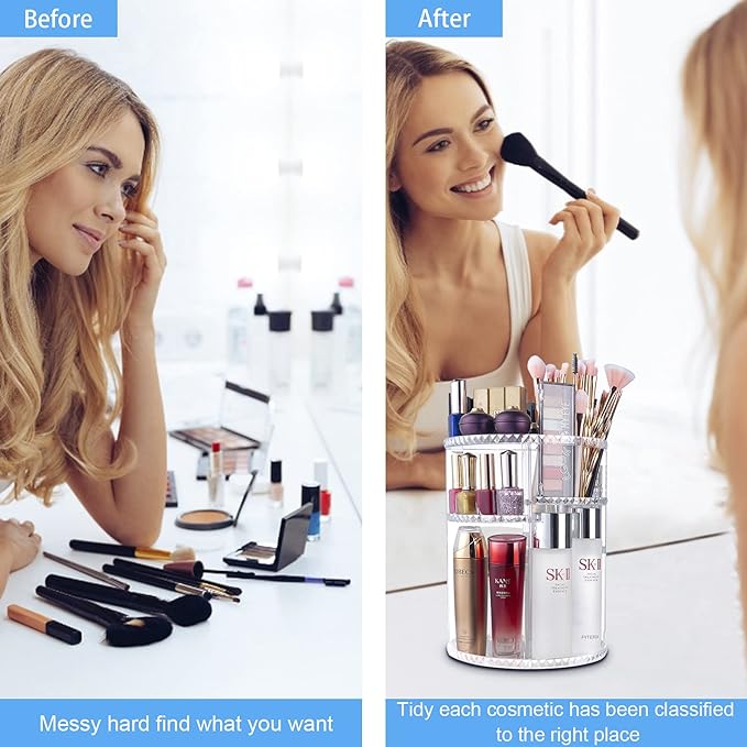 Amazon:$9.49 ($18.99)chfine 360 Rotating Makeup Organizer, Adjustable Carousel Large Capacity Revolving Perfume Organizer Skincare Cosmetics Storage Spinning Holder for Vanity, Clear