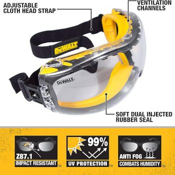 - Dewalt DPG82 Concealer Anti-Fog Dual Mold Safety Goggle – 1 Pair :$9.99 ($12.99)at Amazon.com
