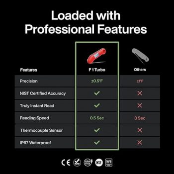 Amazon:$9.99 ($29.99)ProfessionaI Meat Thermometer Digital, 3X Faster 0.5 Sec Instant Read, NIST Certified Accurate to ±0.5°F, 100% Waterproof, Auto-Rotating Bright Display, Auto Wake/Sleep, NSF Certified