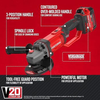 Amazon:$99.00 ($129.00)CRAFTSMAN V20 Cordless Angle Grinder Tool Kit, 4-1/2 inch, Battery and Charger Included (CMCG400M1)