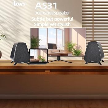 Amazon:$99.99 ($199.99)AS31 Active Bookshelf Speakers Bluetooth -2.0 Powered Speaker Stereo Computer Speakers for Desktop pc ,Monitor Speakers 80WRMS/3inch Bass RCA/Optic Inputs, Wooden Compact Black