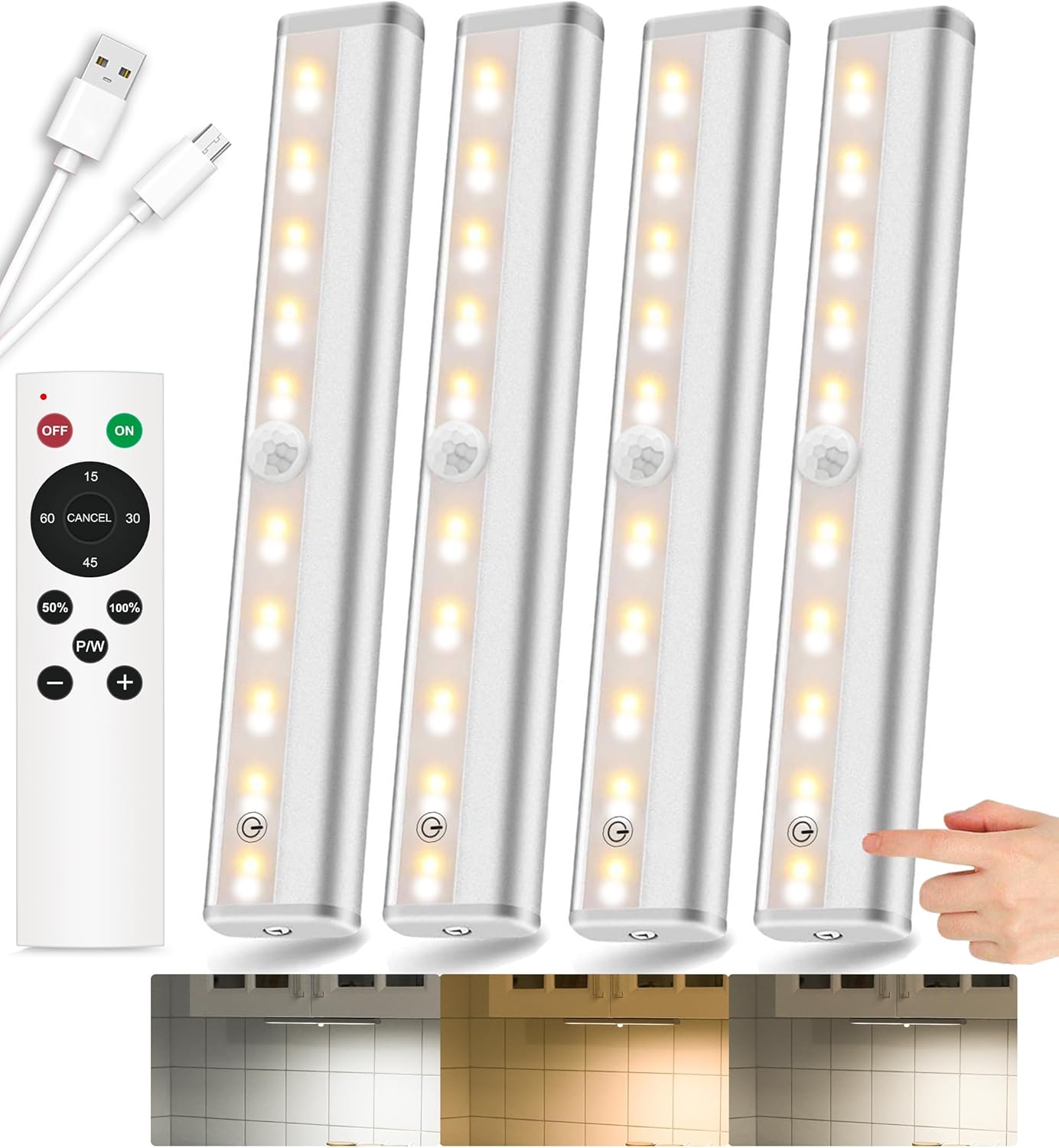 QAmazon: $14.75 ($40.99) 20LED Under Cabinet Lighting Remote Control, Wireless Under Cabinet Lights Rechargeable Under Counter Lights, 4 Pack
